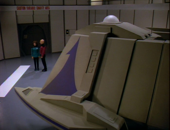 | Descripción: - Nave de registro lyaaran. Posee un phaser como armamento y velocidad warp reducida. - Un transbordador Iyaarans, piloteado por Voval, recogió al capitán Jean-Luc Picard para llevarlo al mundo hogar de los Iyaarans para una visita diplomática en 2370. En dicho viaje, el sistema de energía de la nave falló y el trasbordador se estrelló en un planeta cercano. (TNG: "Liaisons") |