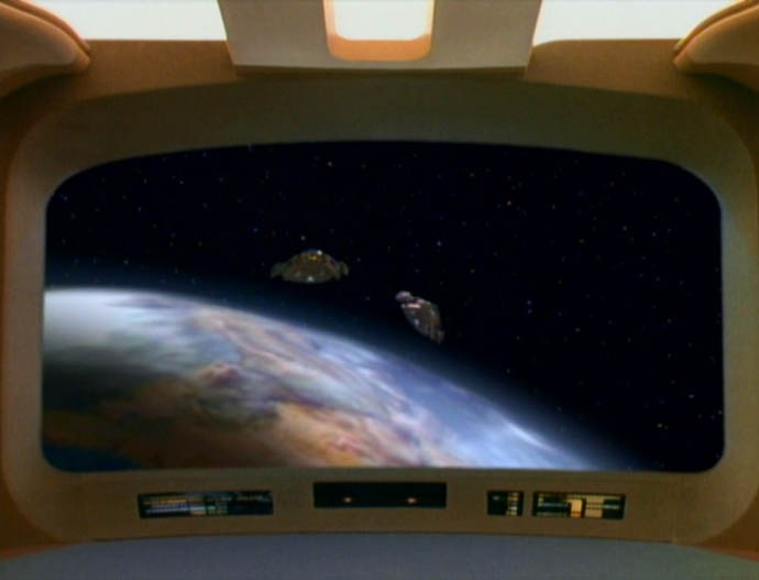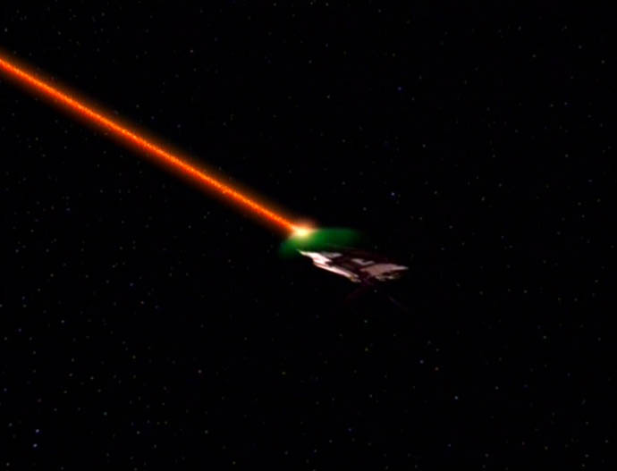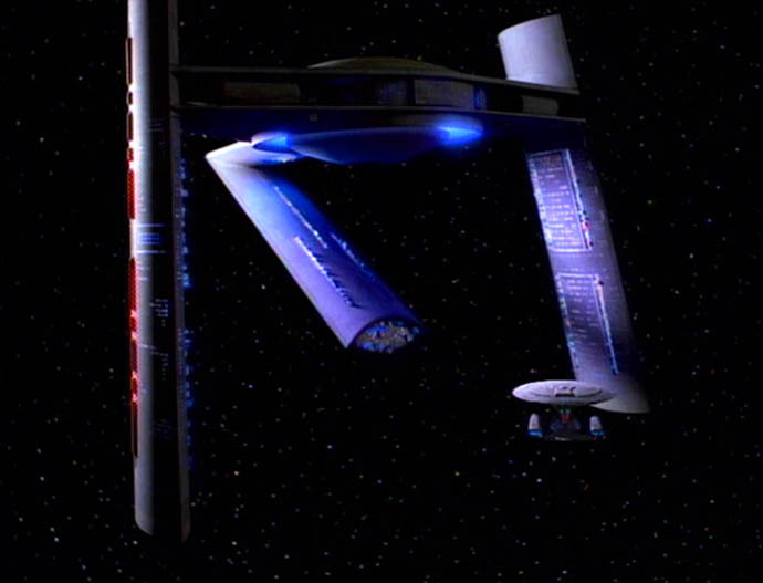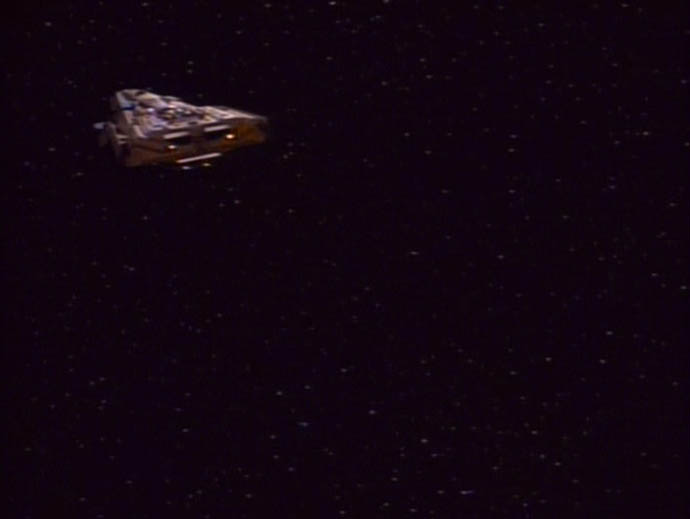 | Descripción: - Poderosa nave estelar de los kaelon. - En 2367 dos de ellas fueron lanzadas desde la superficie del planeta Kaelon II para obligar al capitán Jean-Luc Picard a que regrese al Dr. Timicin al planeta. (TNG: "Half a Life") |